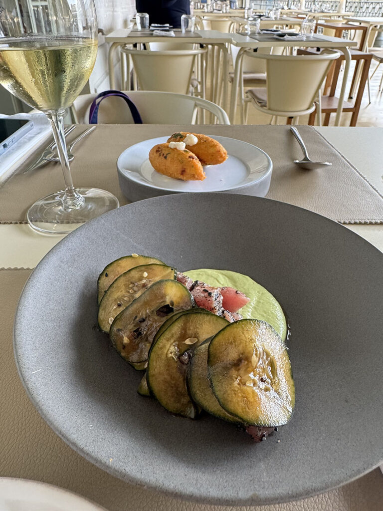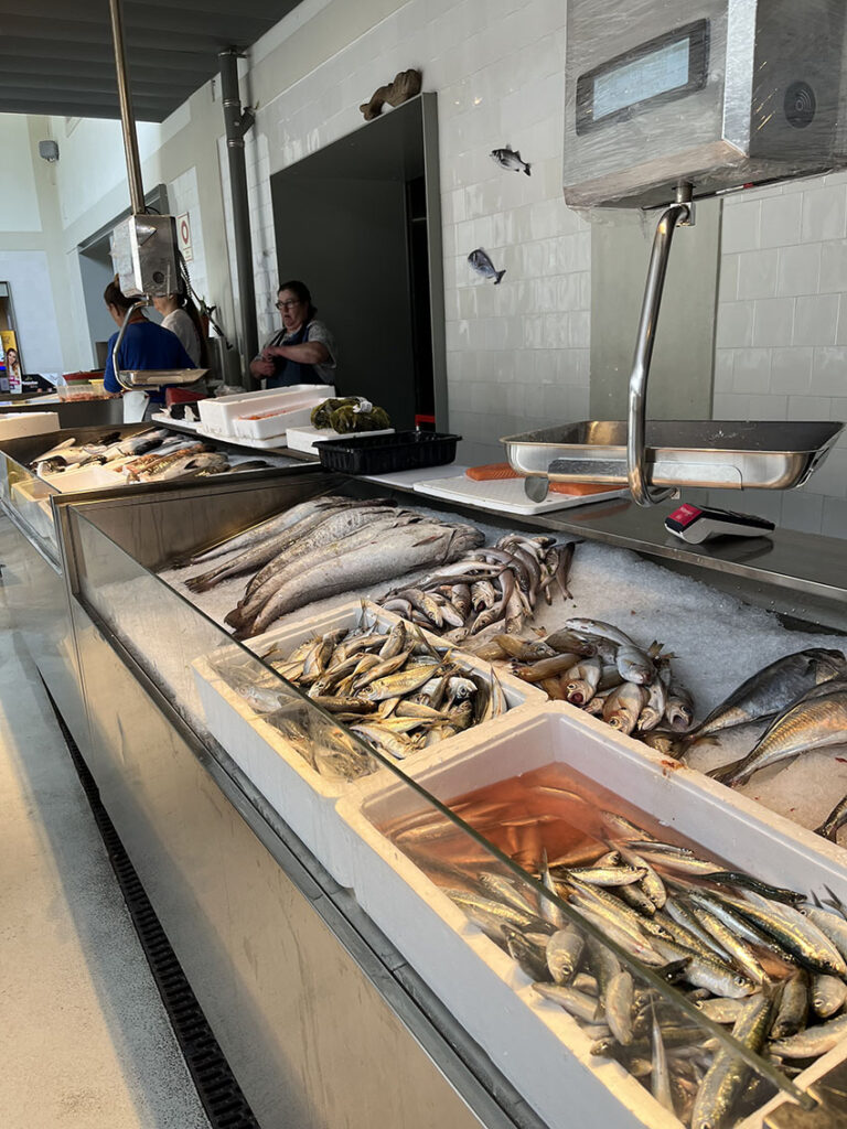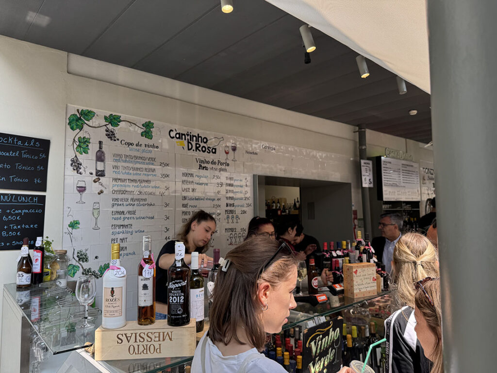 何が魅力的か?それは、生きたポルトを誰でも体験できるからです。観光客が地元客とポルトの日常に混ざり合って、美味しいものを探す、食べる喜びを感じられるのです。言ってみれば、バスクのバルでピンチョスを楽しむのと同じ感覚です。市場でも新鮮な魚介のピンチョスらしきもの、カップに入ったチーズやフルーツ、ワインのグラス売りもしています。ポルトガルのレストランは結構ボリューミーだったので、市場での立ち食い・立ち飲みは、私達にとって食事量の調整にとっても便利でした。