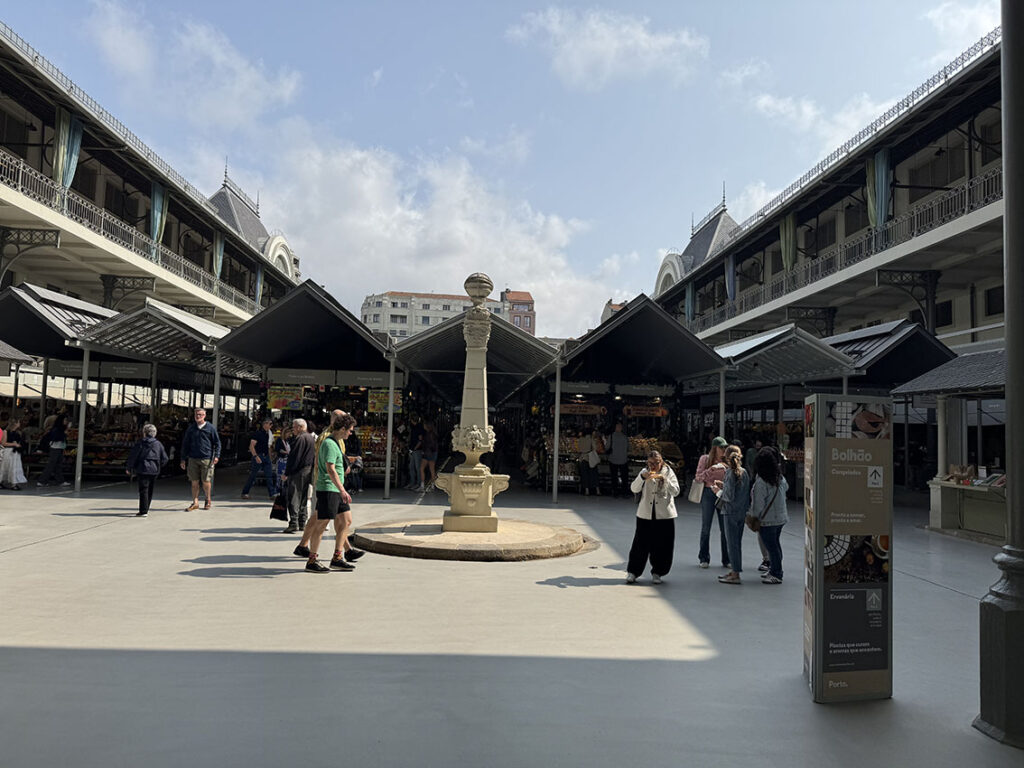 ボリャン市場は観光客で賑わうドゥエル河とは逆の高台にあります。中庭を囲む鉄骨のバルコニーとアズレージョが印象的な2階建の伝統的屋内型市場です。