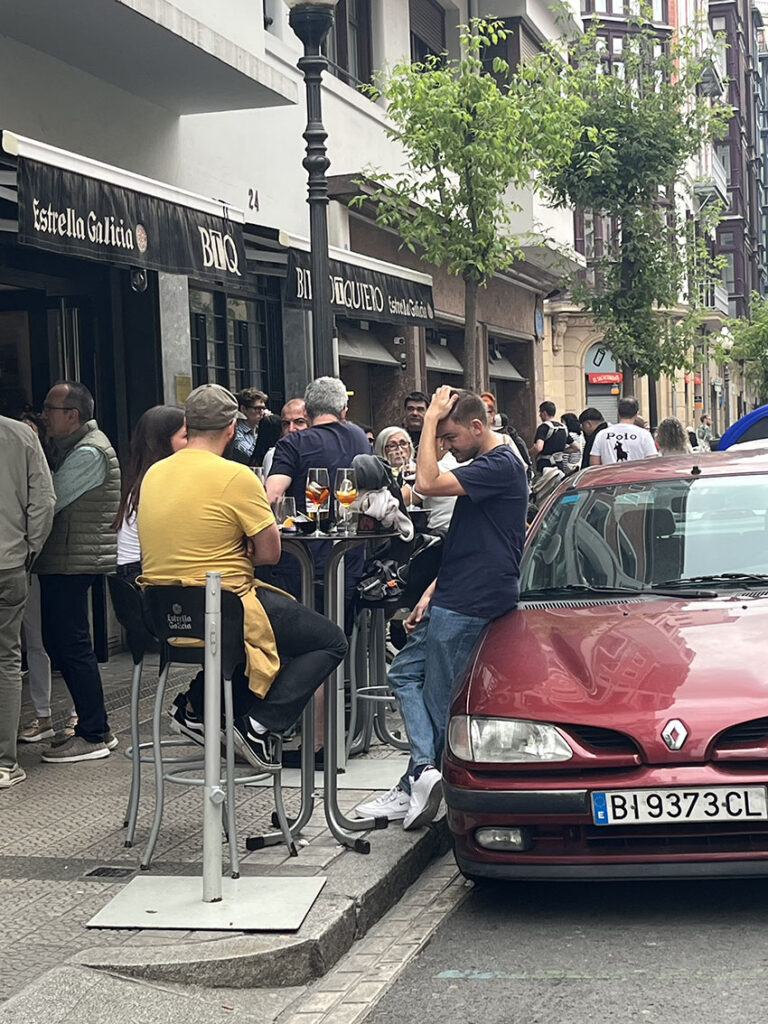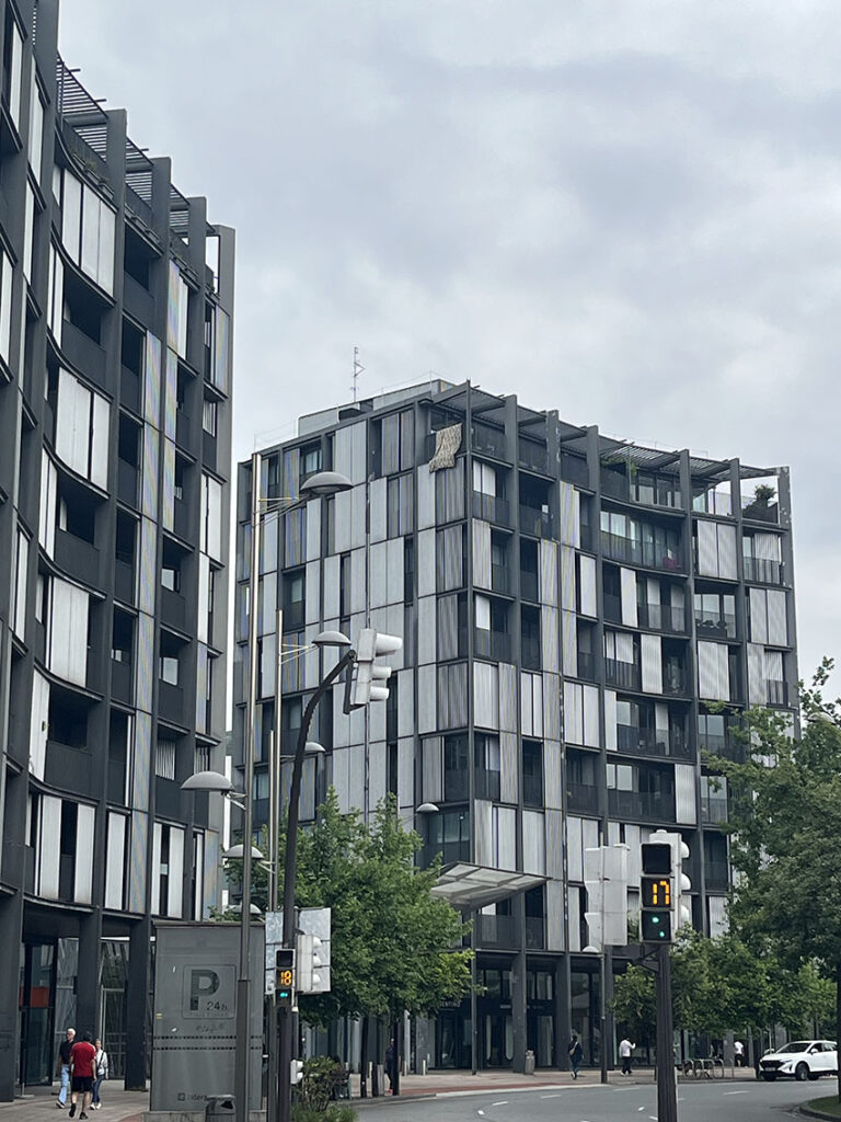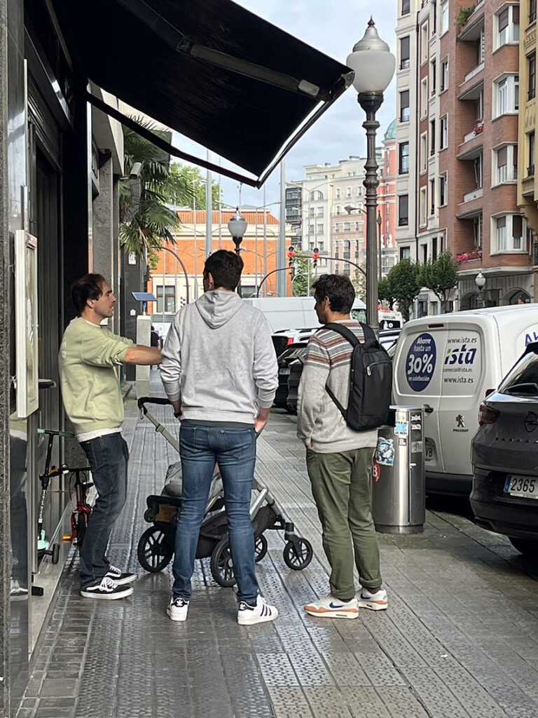 まずビルバオですが、お気に入りになったホテルカールトンに戻ってくることができました。新市街地を散策するにも便利で、平日の風景からご紹介します。それは、出勤風景からして目を奪われることばかりでした。ベビーカーを押して出金途中にベーカリーカフェによるワーキングマザー、ベビーカー引く男性が途中で友達と立ち話。日本でいえば定年の頃と思われるカジュアルコーディネイトの男性が行き過ぎる・・。全てが自然だけど、日本にはどれもない光景です。みんなが無理なく働いている朝をカフェから飽きることなく見ていられます。日本の大変そうで無表情な出勤と違って穏やかでゆとりがあります。