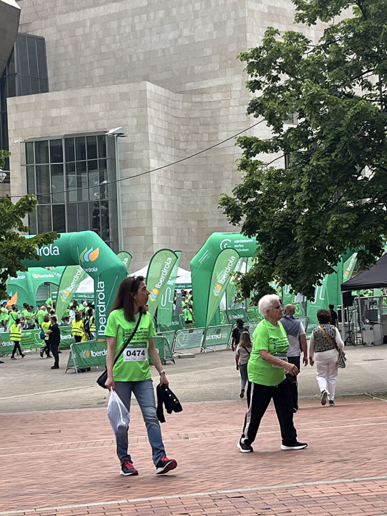 日曜日はベーカリーカフェでブランチの後、グッゲンハイム美術館のある再開発地域を散策しました。マンション立ち並ぶ中に整備された公園・市の美術館・大学がある界隈です。ツーリングの親子、犬と散歩の老年ご夫婦を見ながら美術館の広場へ行くと市民マラソンが開催されていました。