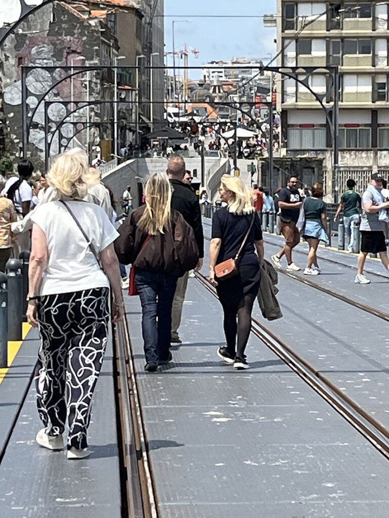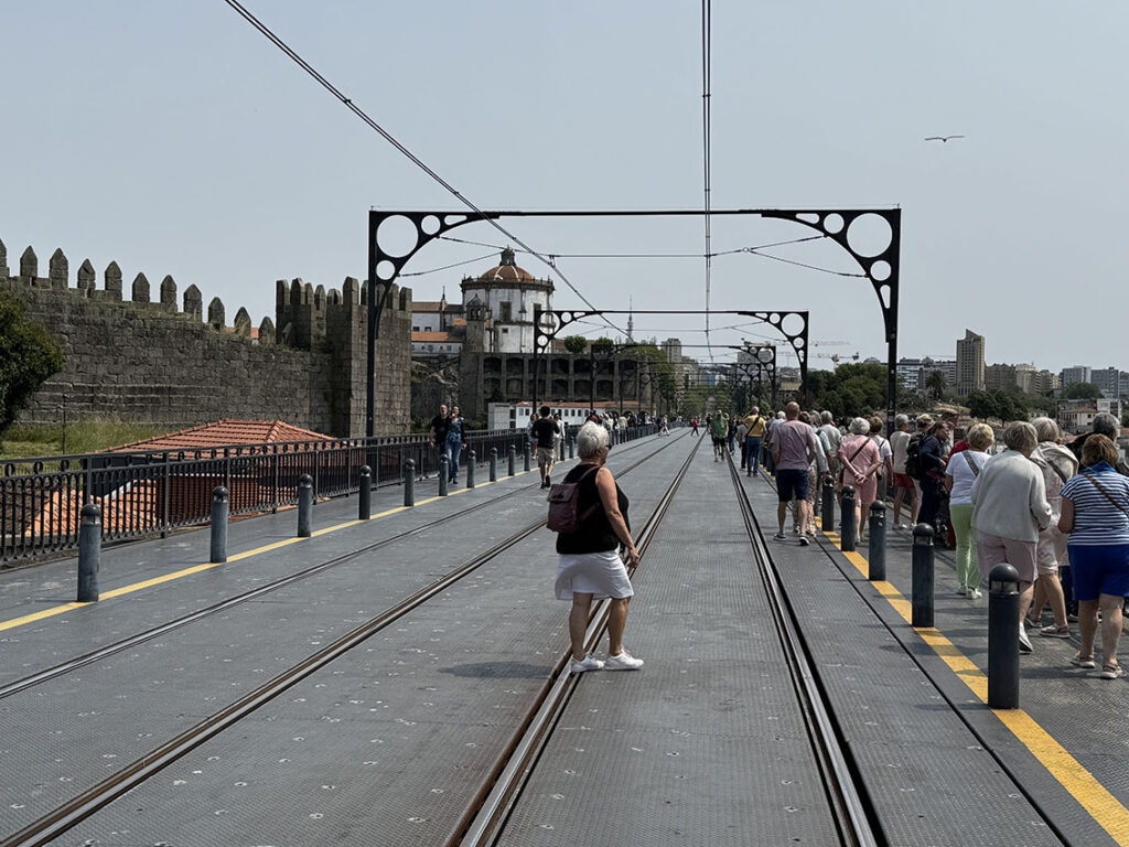リスクを優先して禁止するより、互いに注意しながらポルト屈指のロケーションを臨場感を持って楽しめる。その運用・判断は感動ものです。橋の桟も日本よりずっと低めなので、高所恐怖症の人はかなり怖いと思います。橋のふもとで眺望や人と電車の往来を楽しむこともできますが、行けるところまで橋を渡ってみる価値は大いにあります。